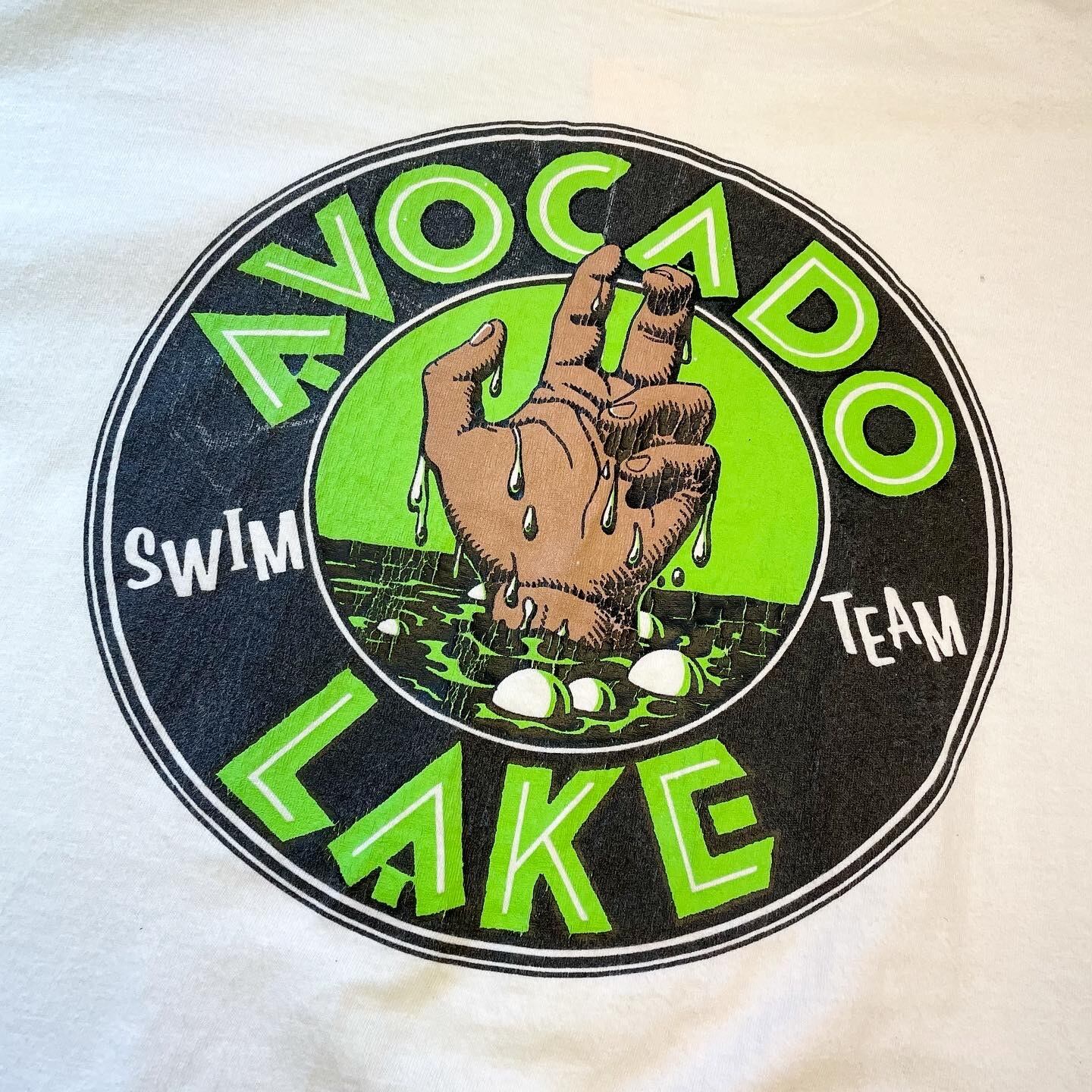 90’s AVOCADO LAKE Swim Team T-shirt fabric in usa