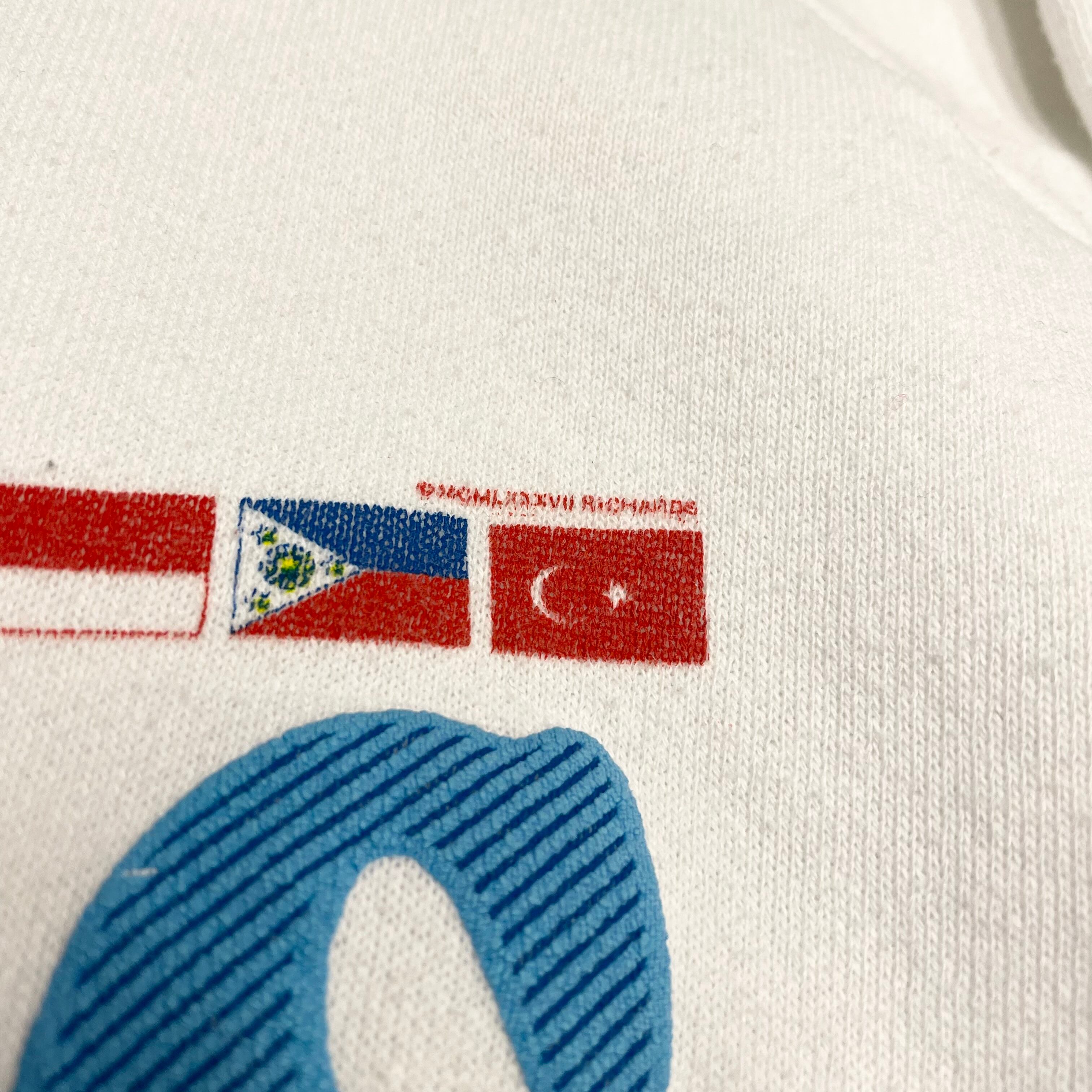 シンプルデザインですが国旗のプリントが可愛い1枚!サイズも80年代にしては大きめです!お好きな方は是非!